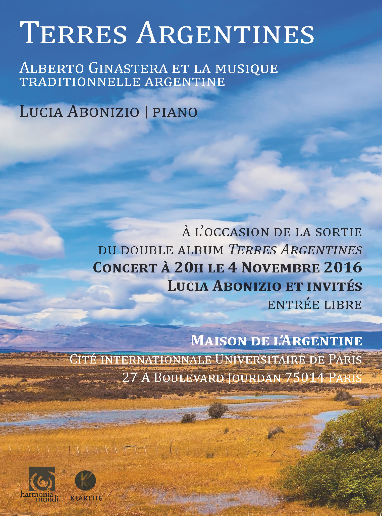 Concert Lucia Abonizio « Terres Argentines. Alberto Ginastera et la musique traditionnelle argentine », avec la participation de Gilberto Pereyra au bandonéon.
