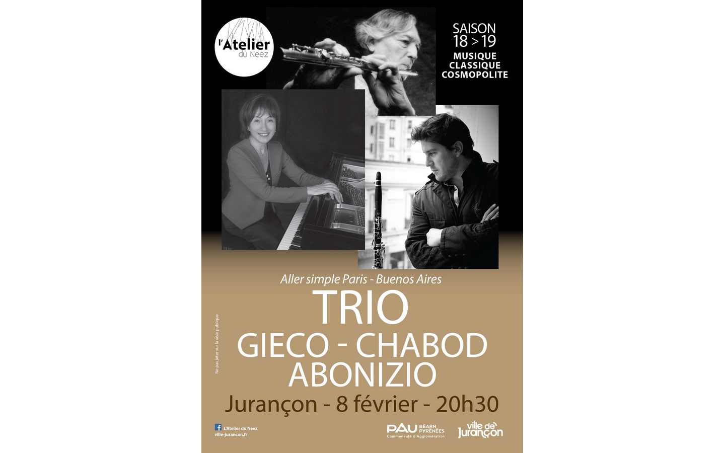 Le trio Gieco – Chabod – Abonizio, Musique Classique, se produira le 8 février 2019 à 20h30. Ce concert sera précédé par un master classe.